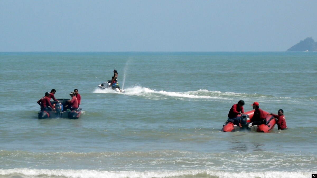 Thai media showed photos of people rescued from one of the ships in large rubber life-rafts at sea, with fishing boats and churning water in the background.