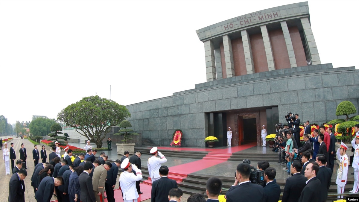 Kim laid a wreath outside Ho Chi Minh's mausoleum in the Vietnamese capital on Saturday, after the conclusion of his shortened summit with U.S. President Donald Trump.