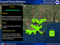 Persistent east to southeast winds of 15 to 25 mph through Friday will produce tide levels 1 to 2 feet above normal during high tide cycles on Thursday and Friday, mostly along east and southeast-facing shorelines.