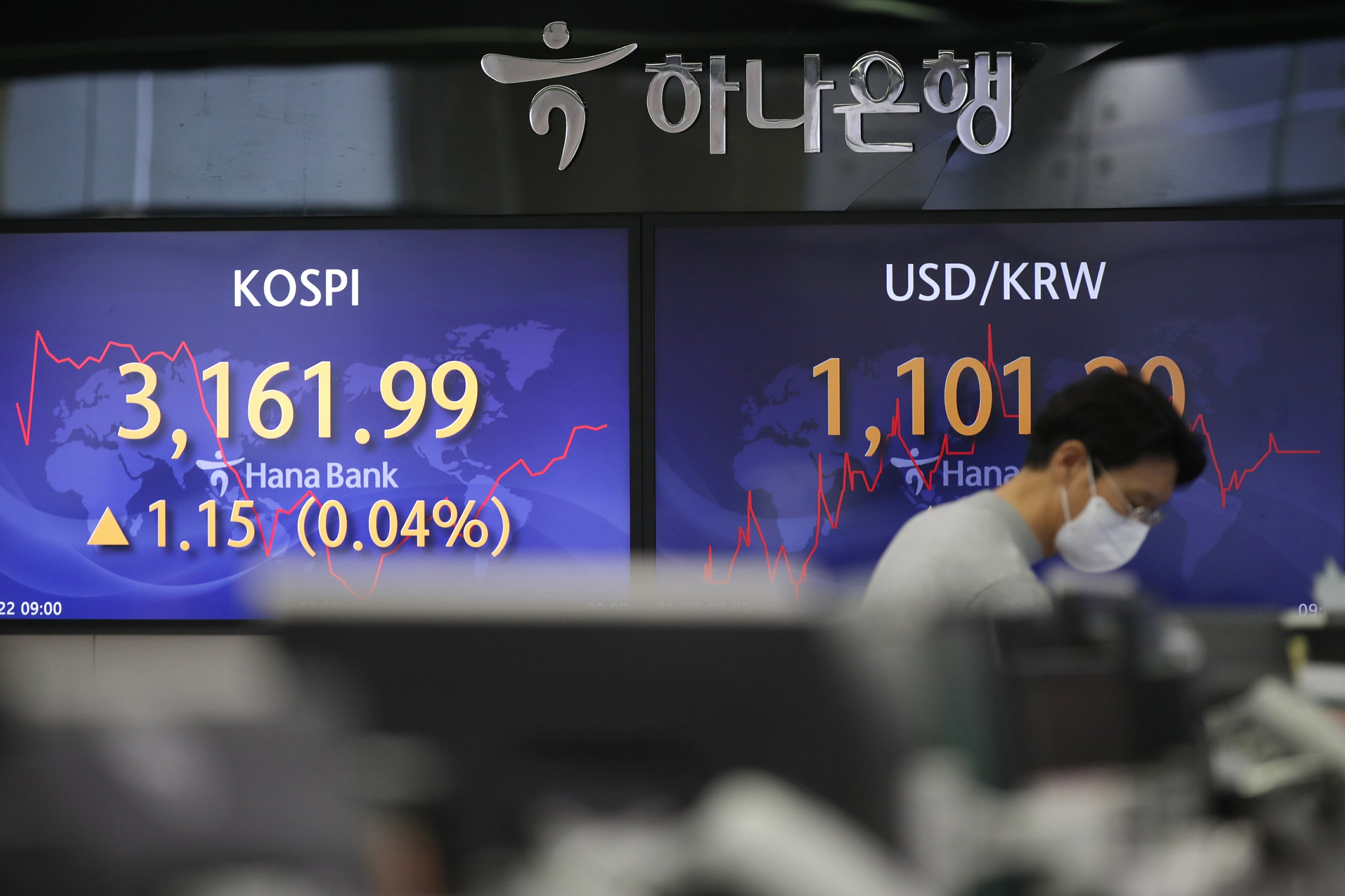 The Kospi in South Korea, where the increase in virus cases has slowed, was off less than 0.1% at 3,159.37 at midday after being up in the morning.