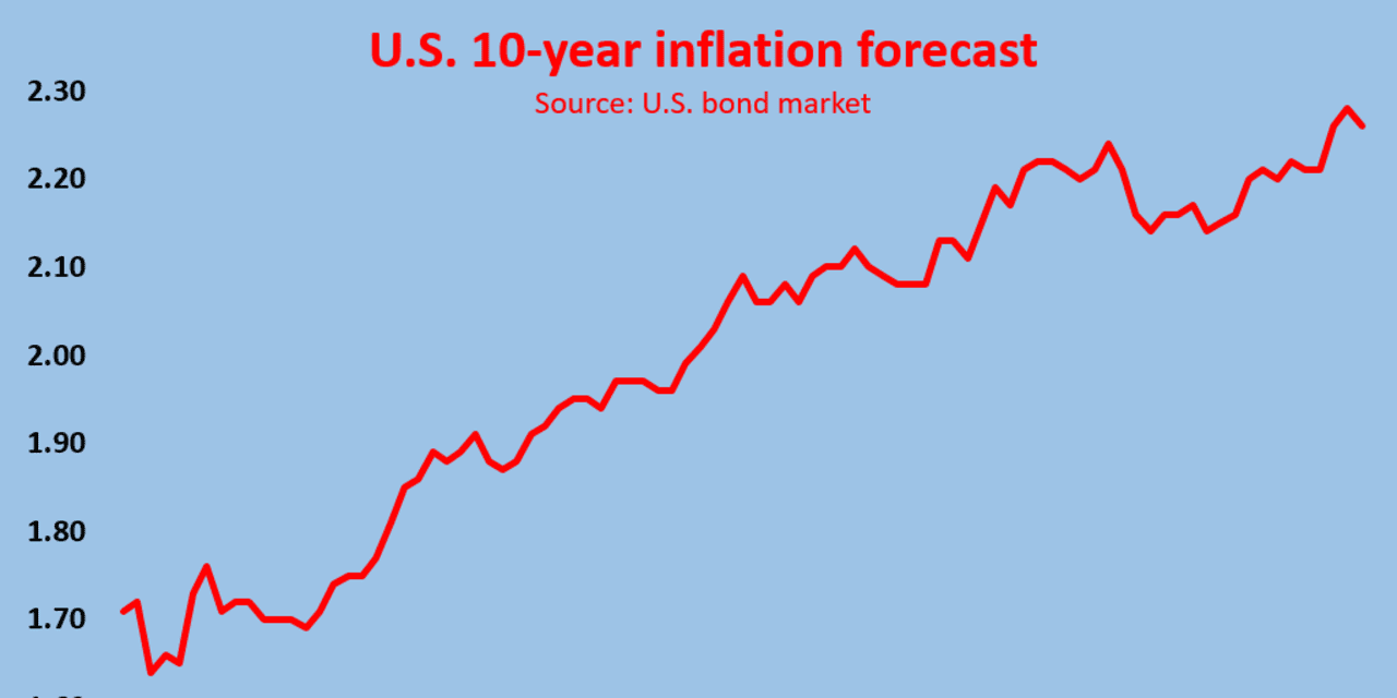 And not everyone is convinced. The bond market, for one. Five months ago, just before the elections, the bond market was predicting inflation over the next 10 years of 1.6%.