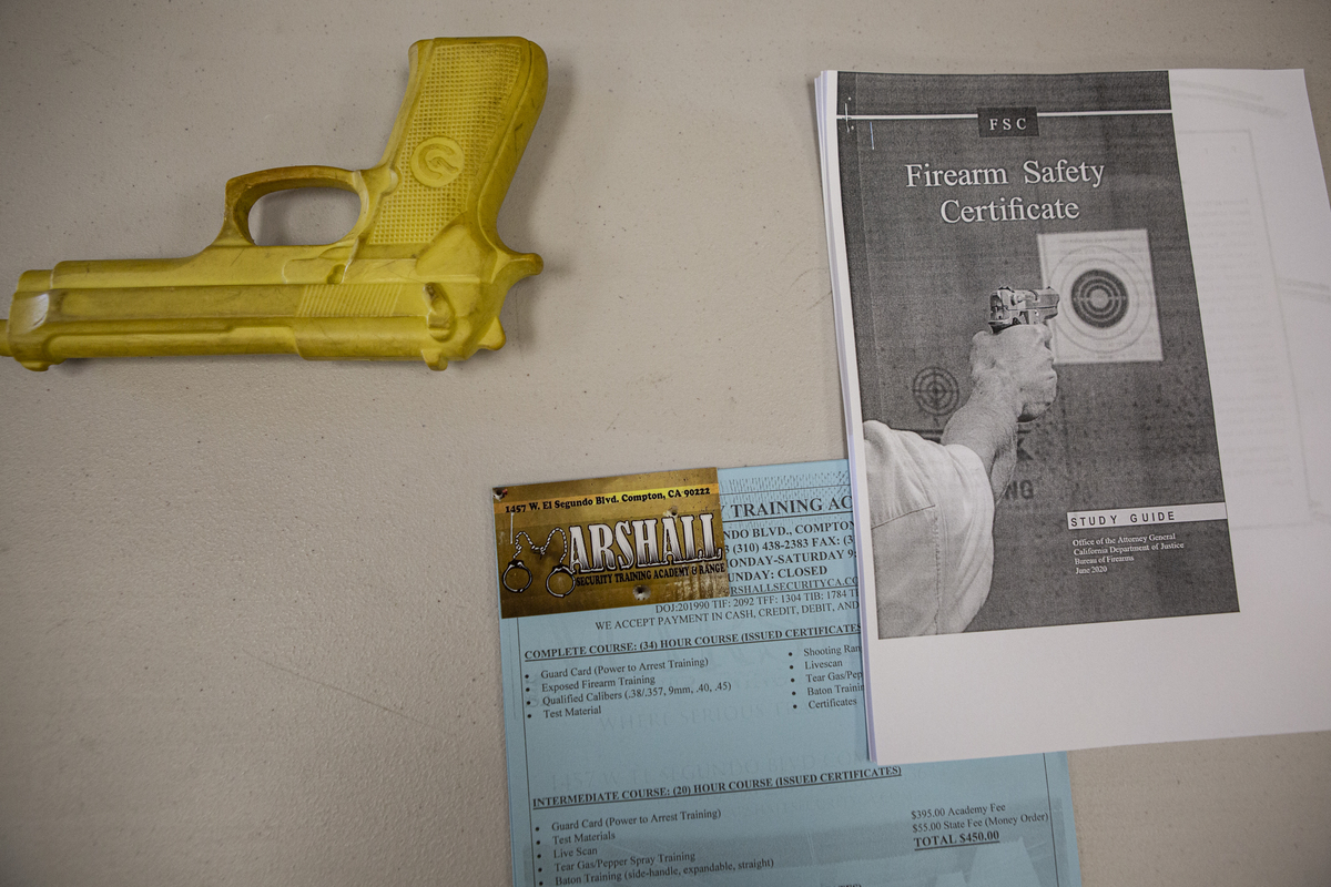 Last Saturday morning, about a dozen people gathered at the Marshall Security Training Academy & Range in Compton to learn how to handle and shoot handguns.