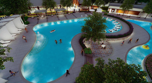 This resort-style pool includes water features and tanning shelves for those wanting to soak up the sun and get a little bronzer this summer while relaxing. There is also a pavilion, event lawn, and trails for family fun.