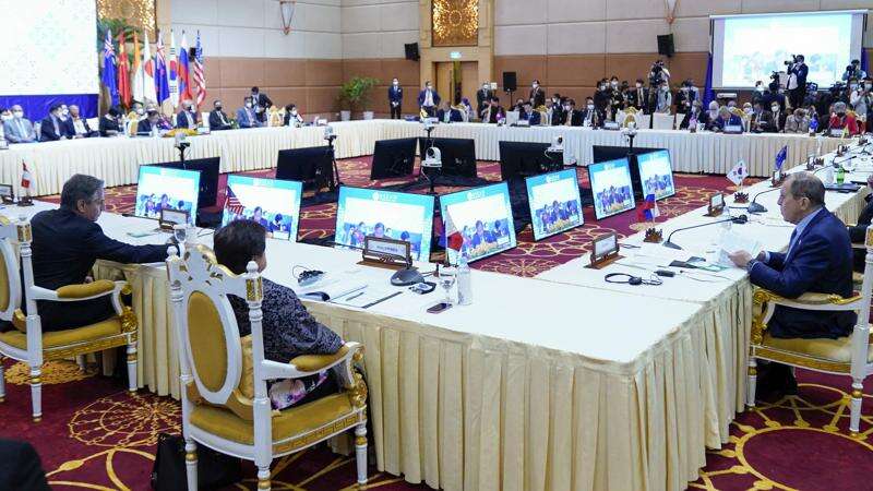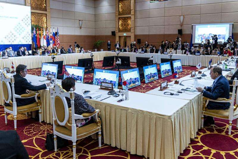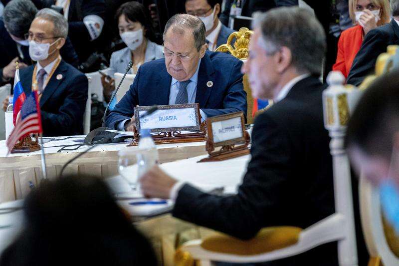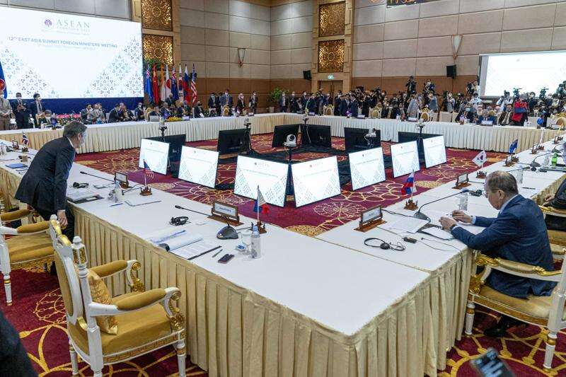 PHNOM PENH, Cambodia (AP) - U.S. Secretary of State Antony Blinken joined the foreign ministers of Russia and China at a meeting Friday with top diplomats from Southeast Asia at a time when the global powers are riven by tensions.